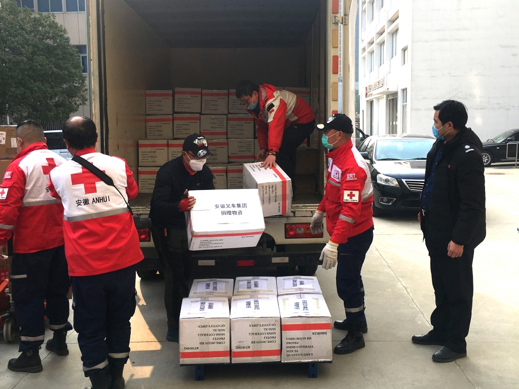 合力向省紅十字會捐贈防疫物資