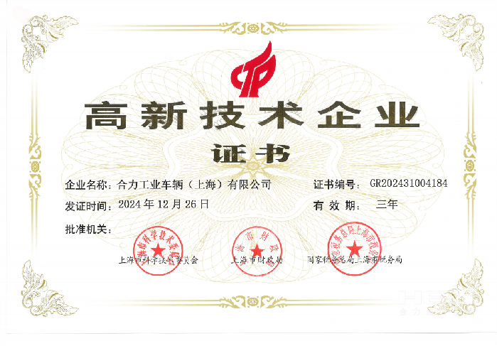 近日,合力工業(yè)車輛(上海)有限公司(以下簡稱“合力科技”)榮獲由上海市科學(xué)技術(shù)委員會、上海市財政局、國家稅務(wù)總局上海市稅務(wù)局聯(lián)合頒發(fā)的國家級“高新技術(shù)企業(yè)”證書,這是公司繼2021年后再次通過“高新技術(shù)企業(yè)”資格認定。 “高新技術(shù)企業(yè)”是國家......